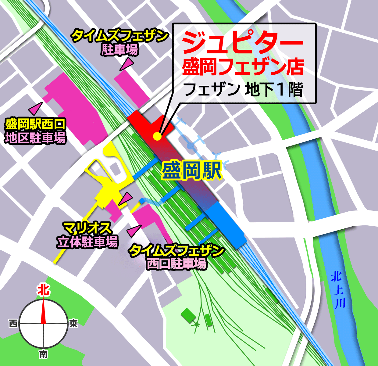 〒020-0034 岩手県盛岡市 盛岡駅前 盛岡駅ビル フェザン 本館地下1階 ![]() |