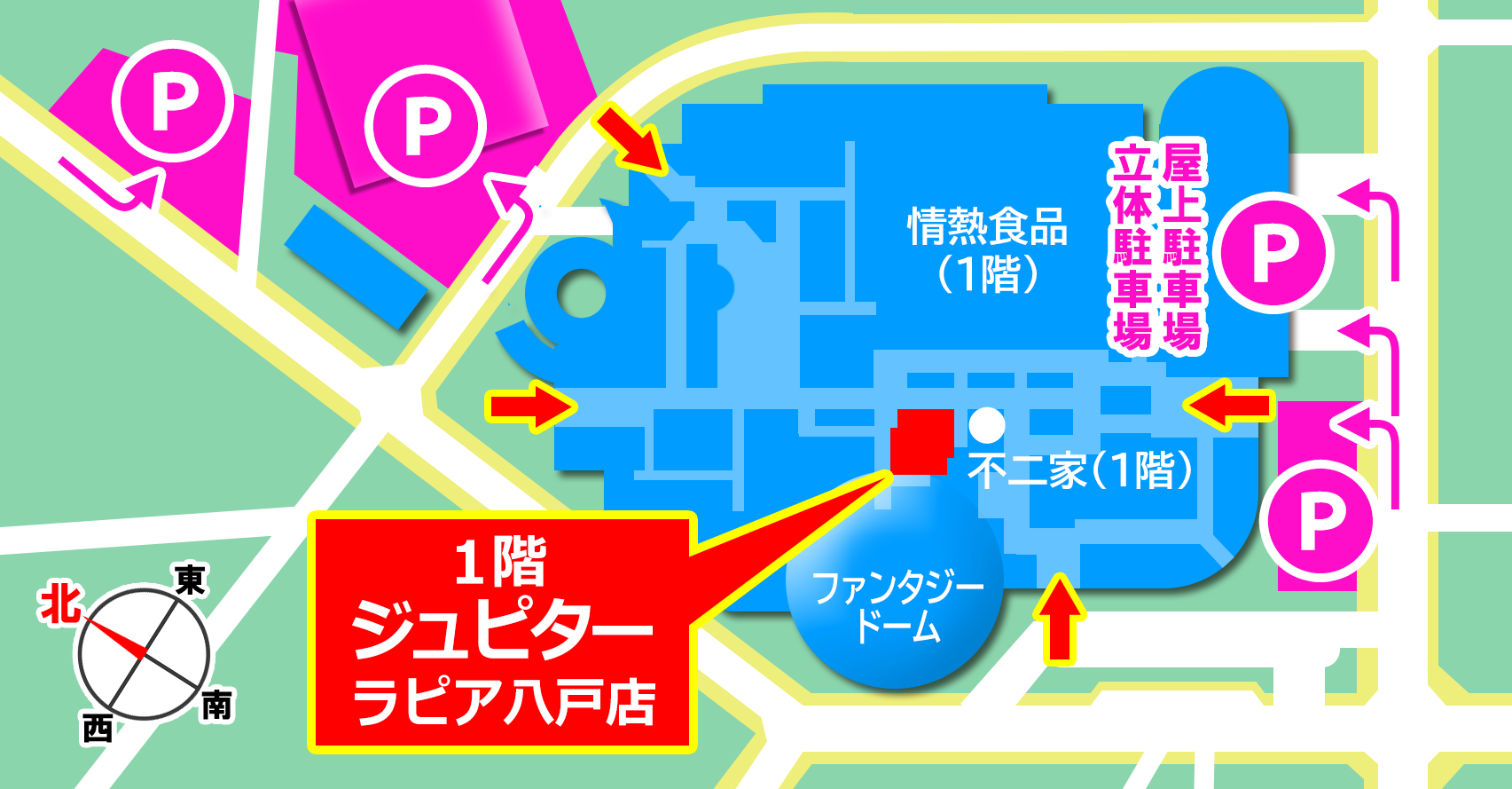 詳しくはラピア公式サイト「交通アクセス」をご覧ください。![]() 八戸市内からは各バス路線のラピア方面行きをご利用ください。 ・八戸市営バス「ラピア」方面行き ・南部バス「ラピア」方面行き ![]() ・JR東北線「八戸駅」で八戸線へ乗り継ぎ、「小中野駅」下車、徒歩約10分。 |